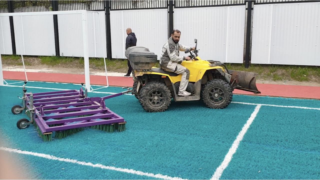 Монофиламентная искусственная трава. Длина ворса — 40 мм. Сделана в виде рулонов — 4x40 м. Материал предназначен для обустройства футбольных полей и детских игровых площадок. Не подходит для ландшафтного дизайна.
